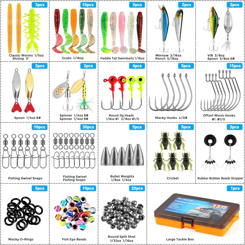 137pcs Fishing Lures and 397pcs Fishing Accessories Kit | Hooks, Weights, Other Accessories, Bait Lure Gear Kit for Men, Bass, Freshwater and Saltwater Compatible