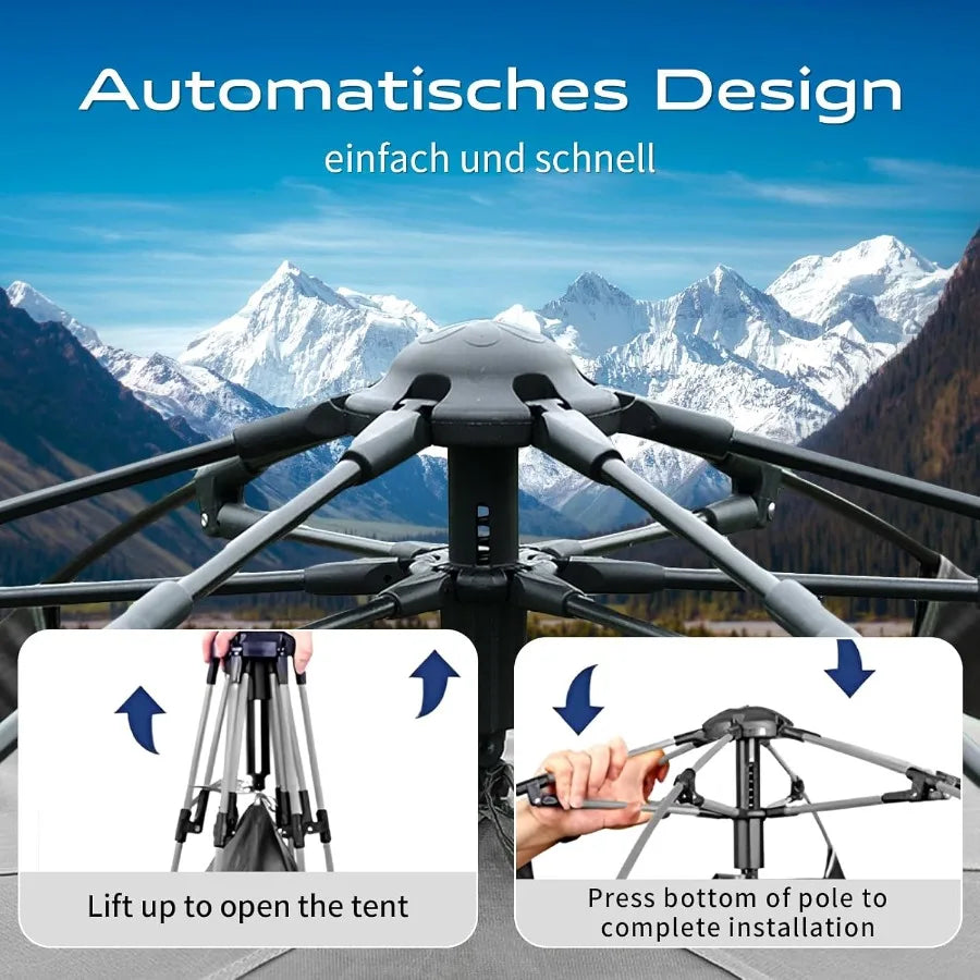 Experience instant pop-up setup and spacious comfort with a three-season hexagonal dome trekking tent.