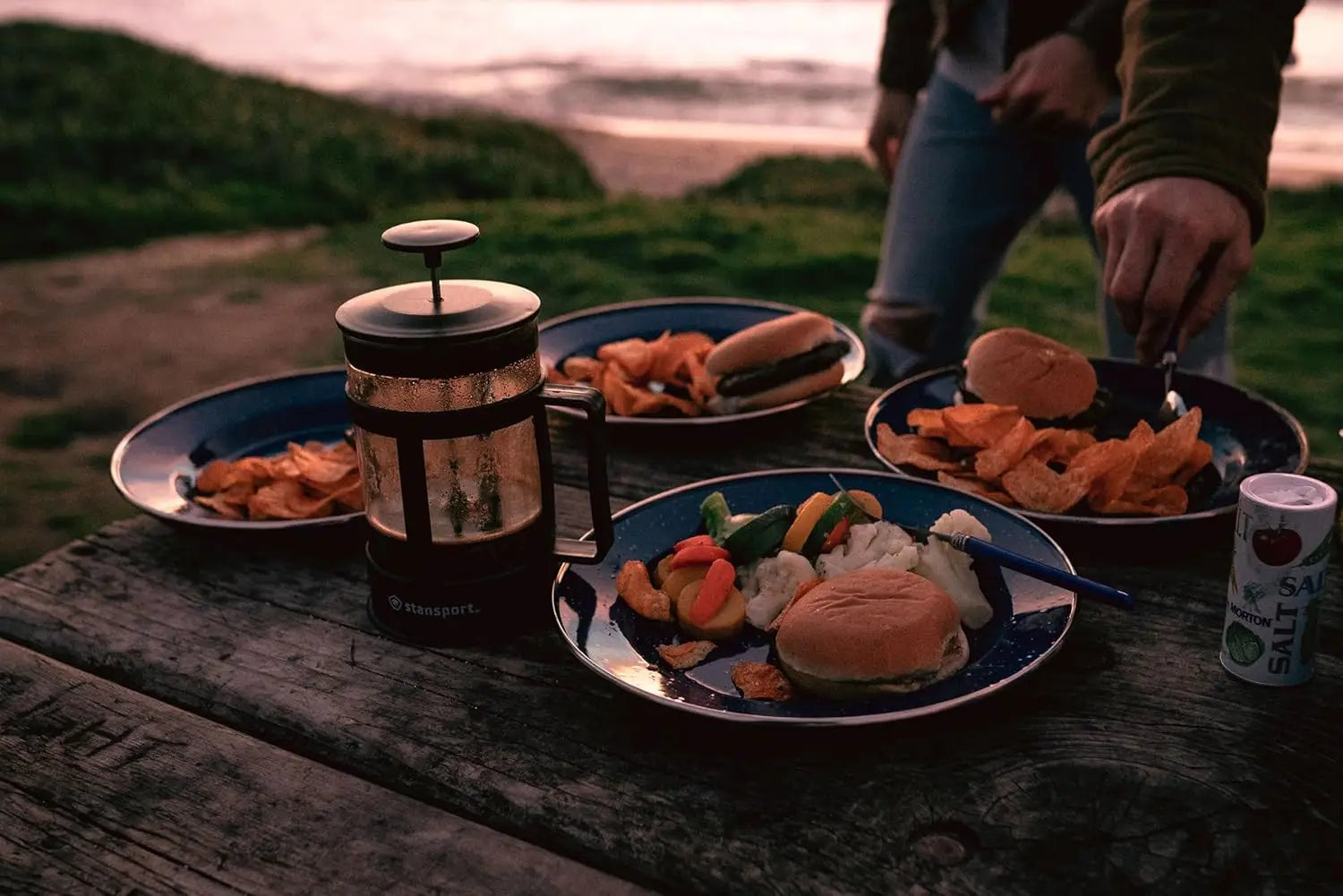 Elevate your outdoor meals with a complete 24-piece enamel tableware set that's built for rugged adventures and shared moments under the stars.