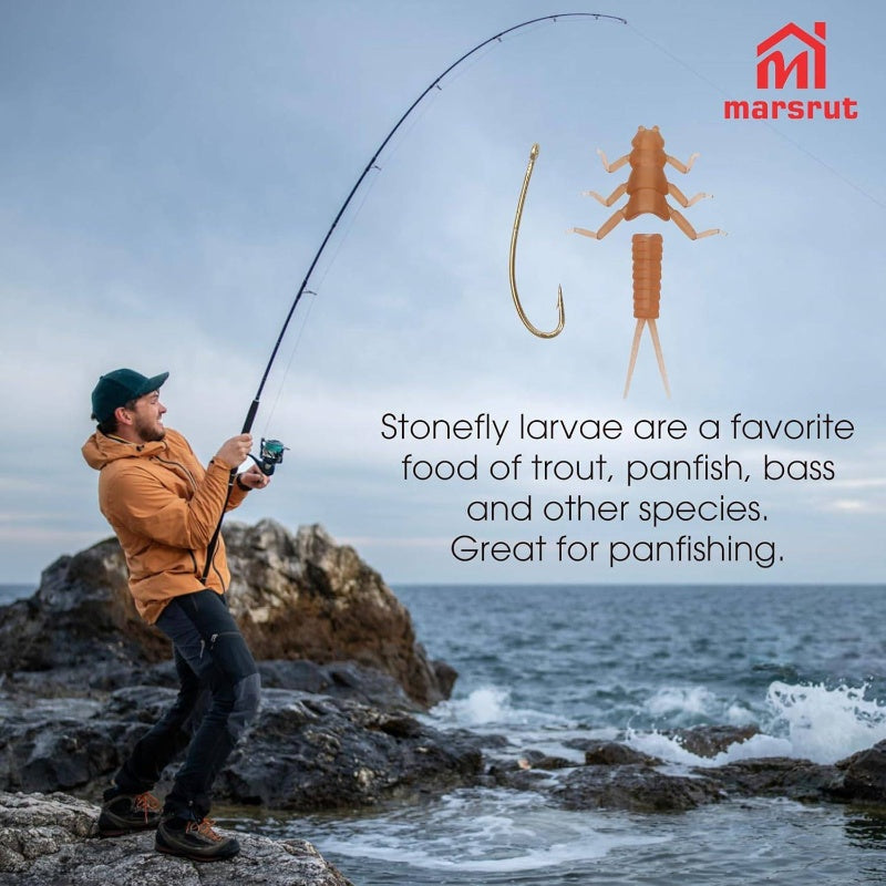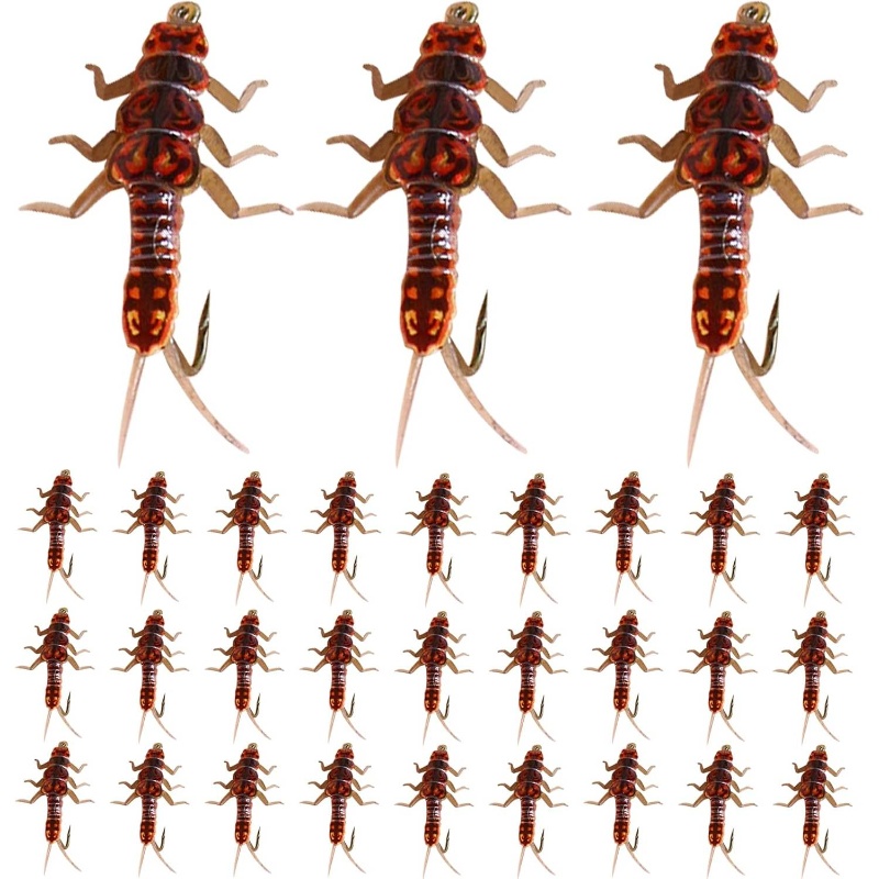 30pcs Stonefly Lures Fly Fishing Baits with Hooks & Stickers - Realistic Synthetic Fly Tying Materials, Soft Plastic Artificial Flies Suitable for Trout, Salmon, Bass, Pike - Fly Fishing Combo Set