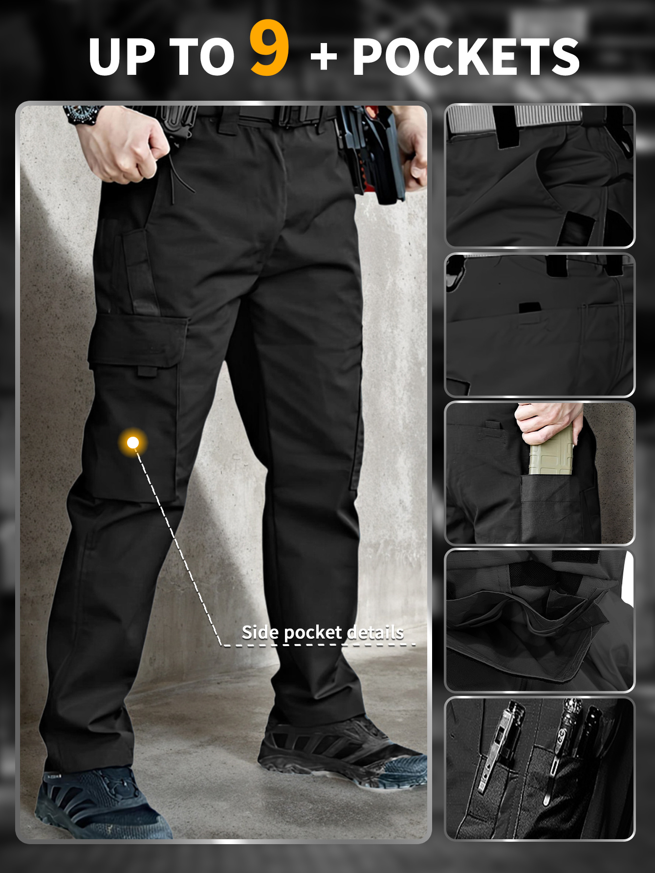 Men's 4-Pack Tactical Pants, Stretchable and Ripstop Work Trousers, Lightweight Cargo Pants for Hiking, Water-Resistant Outdoor Clothing, Perfect Summer Gift