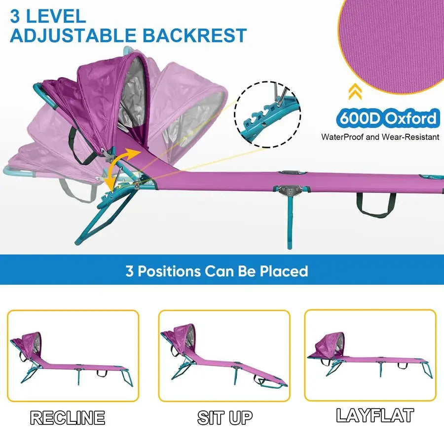 Elevate your outdoor downtime with the XMSJ Adjustable Folding Beach Chaise Lounge Chair With Sun Shade, where customizable comfort meets built-in sun protection.