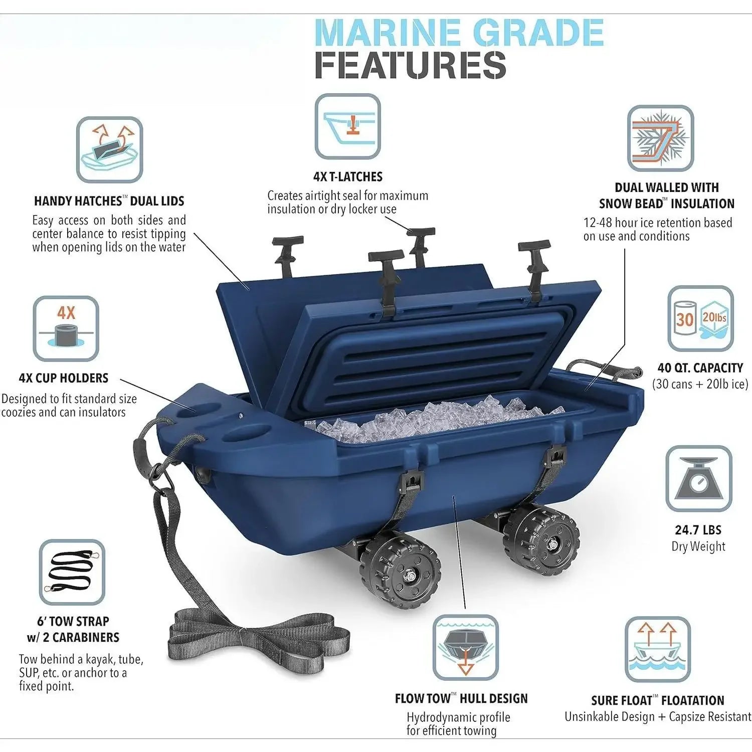 Crawler Cooler with Wheels – 40 QT Amphibious Floating Cooler and Dry Storage Vessel - Orange, Navy