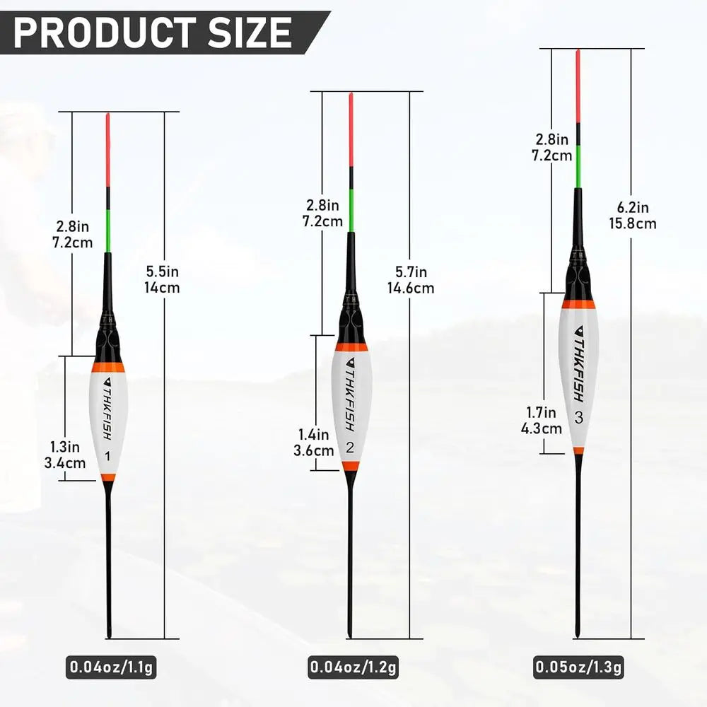 - You get 3 floats, 3 batteries, and 5 rubber stoppers for easy attachment: simply insert the tip into the stopper and secure with the swivel.