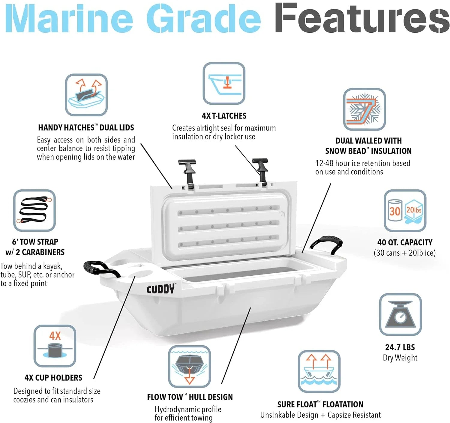 jz Floating Cooler and Dry Storage Vessel – for 40QT Amphibious Hard Shell Design - Multiple Color Options