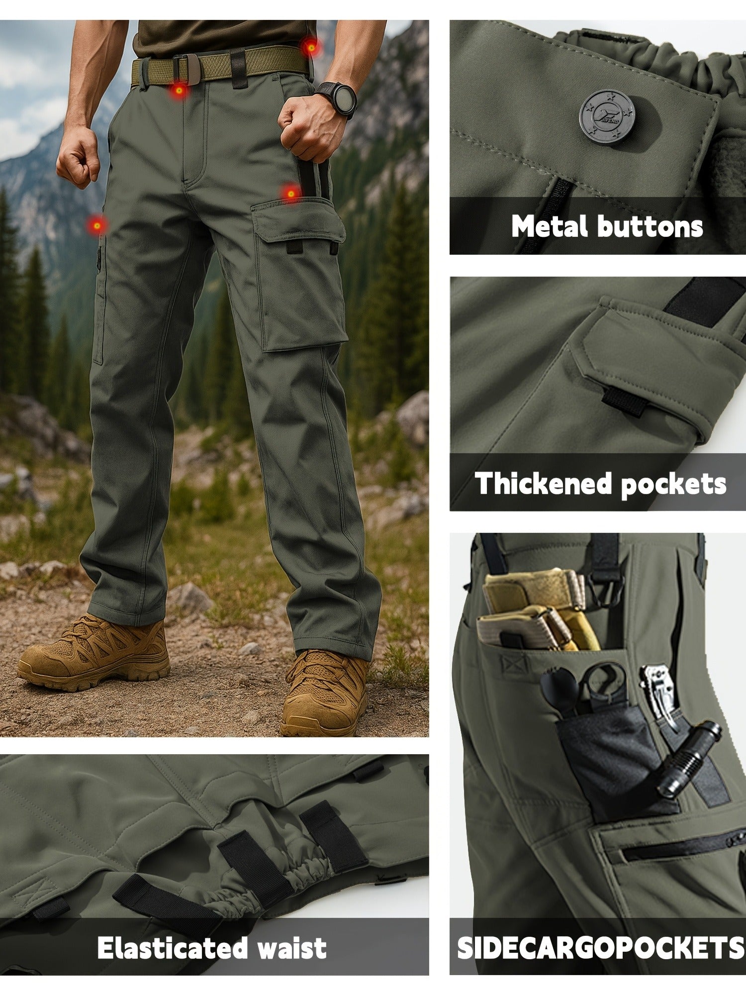 Men's Insulated Windproof Softshell Pants With 9 Pocket Outdoor Trousers