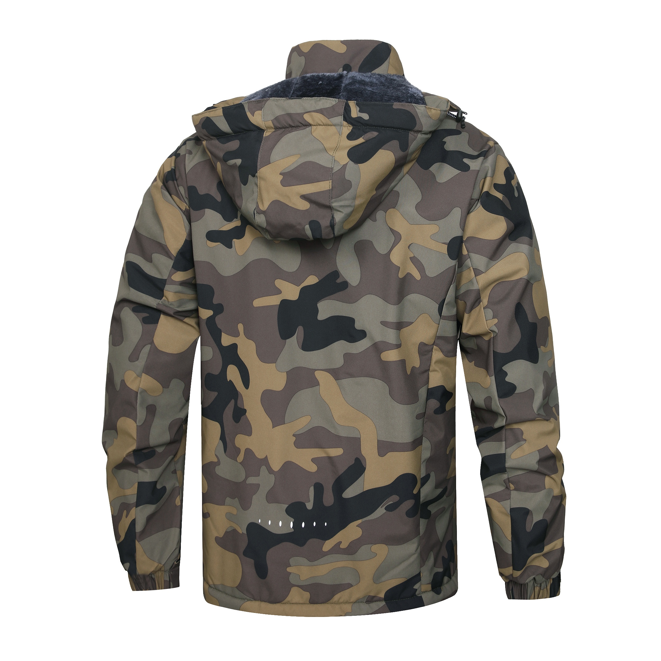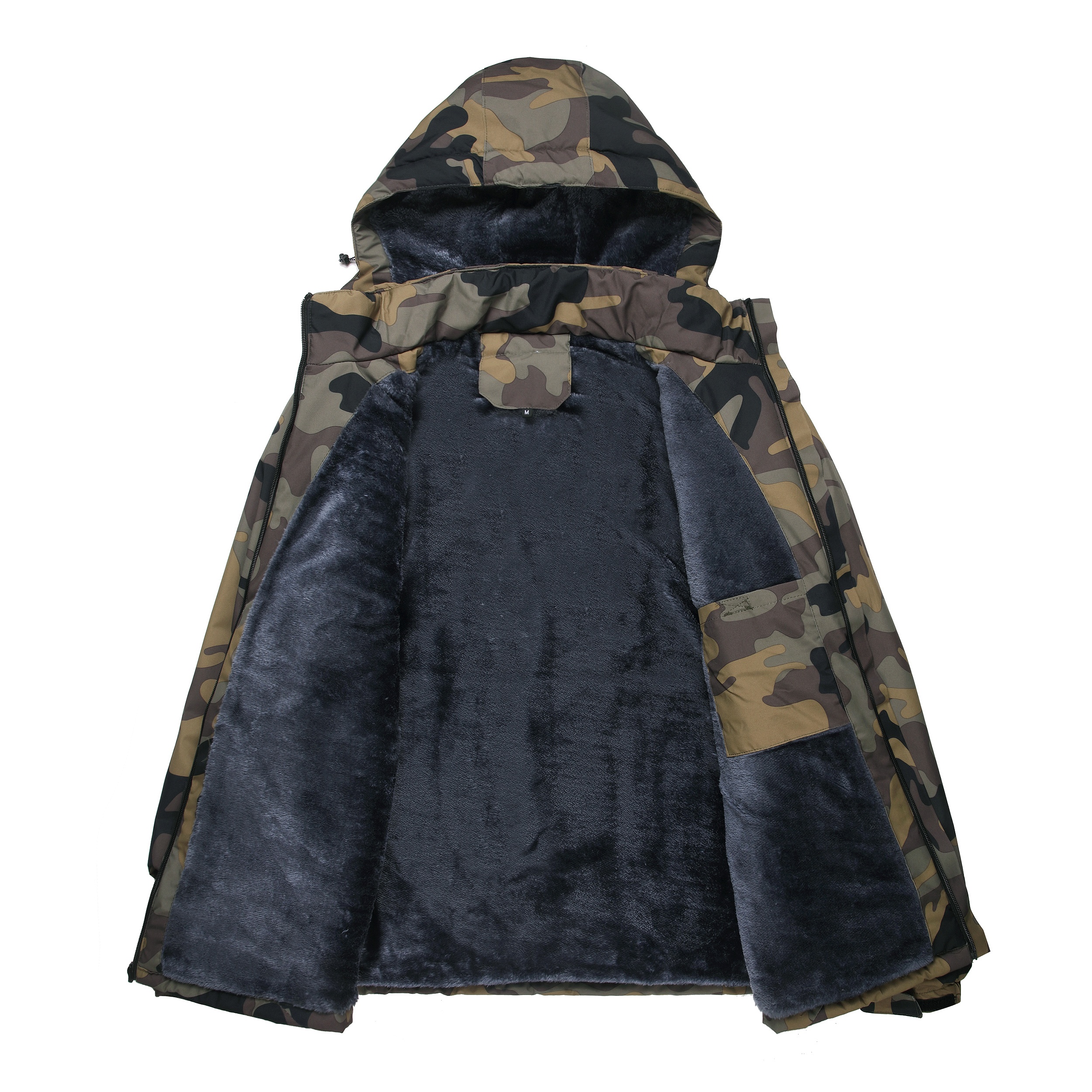 Men's Winter -Lined Thermal Jacket High Quality Windproof Coat with Hood, Thick Outdoor, Button & Zipper Closure, Machine Washable for Hiking, Skiing, Camping - Camouflage (Solid Color also available)