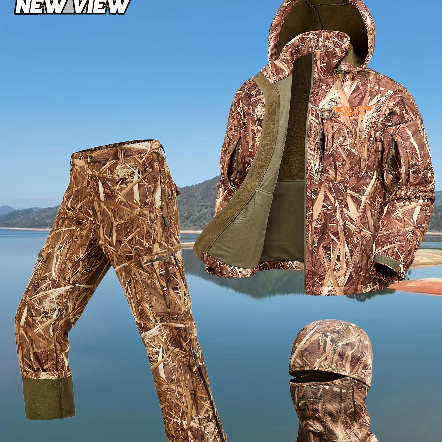 NEW VIEW Camo Hunting Clothes for Men, Winter Warm Hunting Jacket and Pants, Fleece Lined Hunting Suit, for Deer Duck Bow Hunts, Hiking, Fishing, Camping and Outdoor Activities