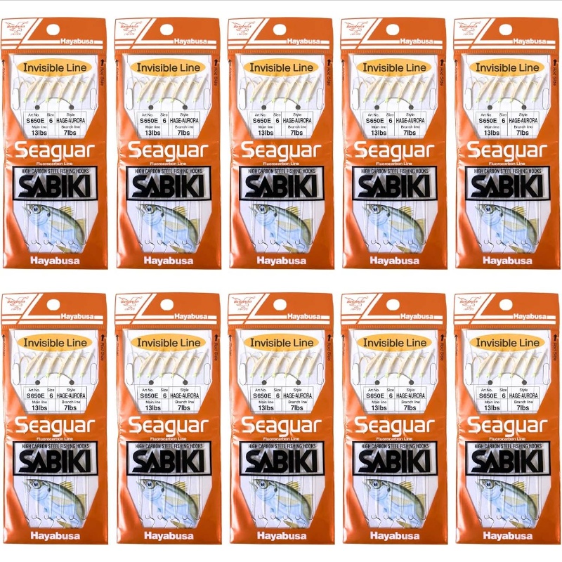 S650E Size #6 Seaguar Fluorocarbon Sabiki Rigs - 6 Hook Bait Rig, Great Small to Medium Sized Baits