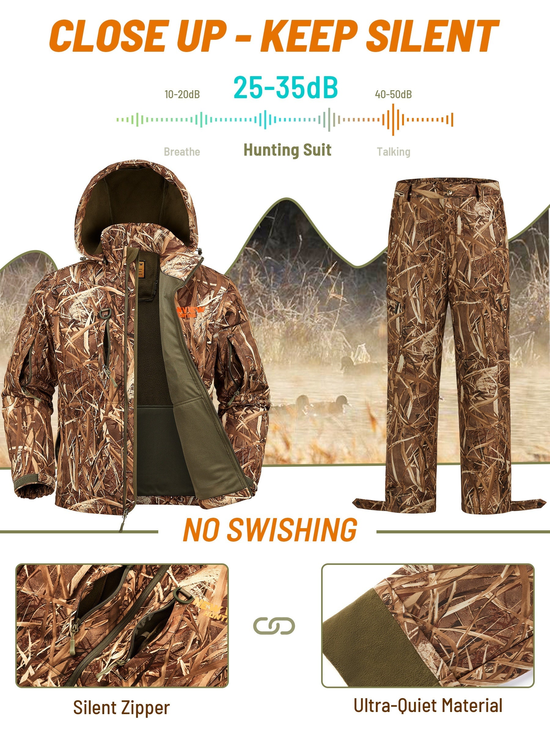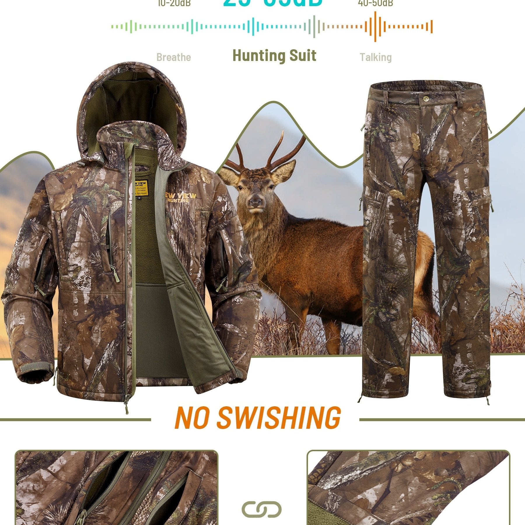 VIEW Hunting Clothes For Men, Warm Fleece Lined Camo Hunting Suit, Jacket And Pants For Deer Duck Bow Hunting